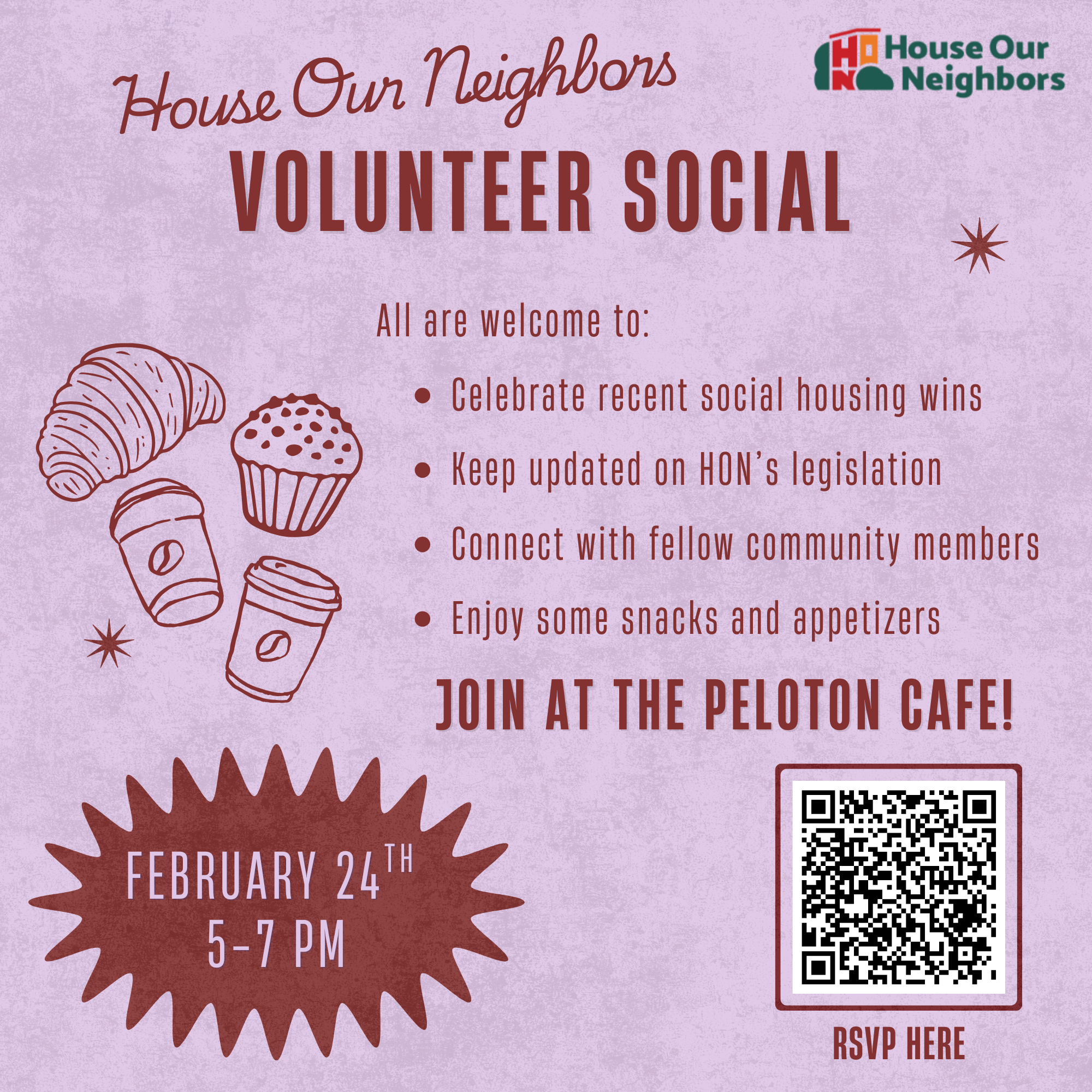 House Our Neighbors is hosting a social to celebrate recent wins, give an update on how their legislation is doing, and share more about what lies ahead for HON in 2026!